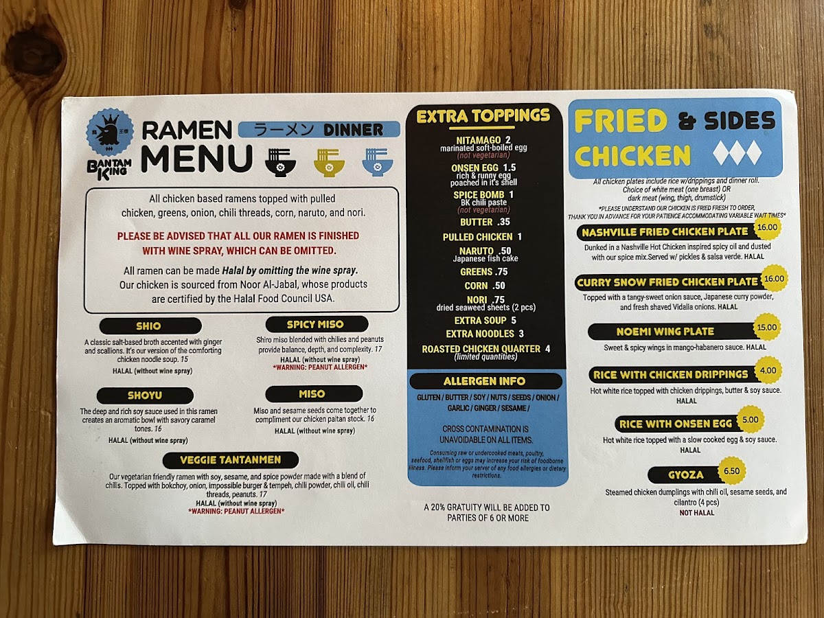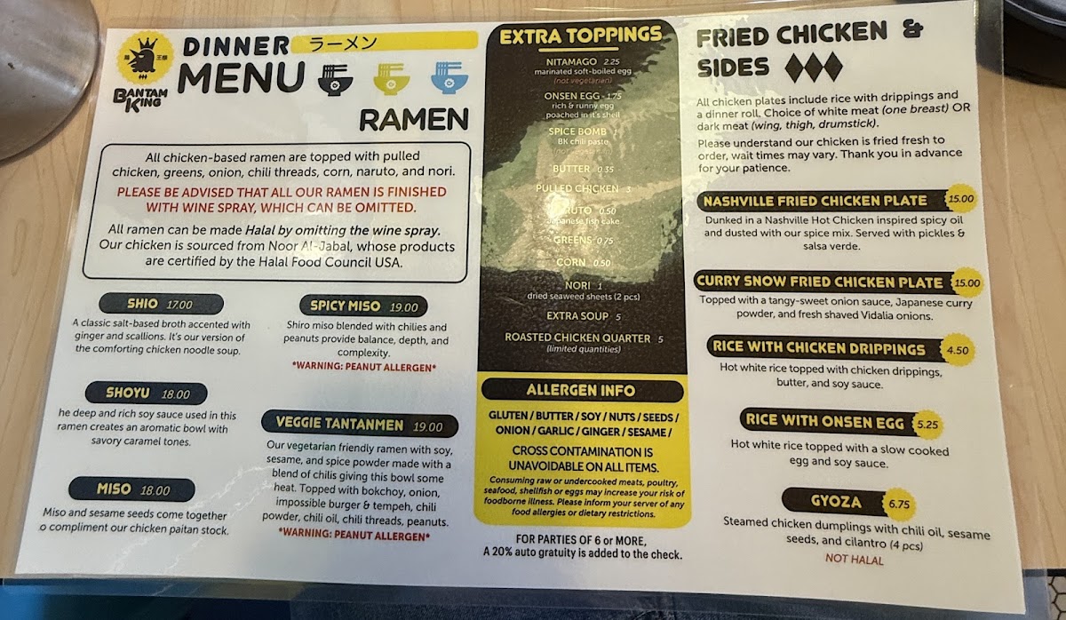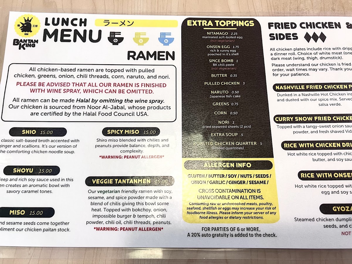 Situated in the heart of Washington, DC, Bantam King is redefining the fried chicken takeaway experience with its fresh and flavorful offerings. This chic eatery specializes in mouthwatering fried chicken and delectable chicken-based ramen, making it a must-visit destination for food lovers seeking both comfort and creativity in their cuisine.